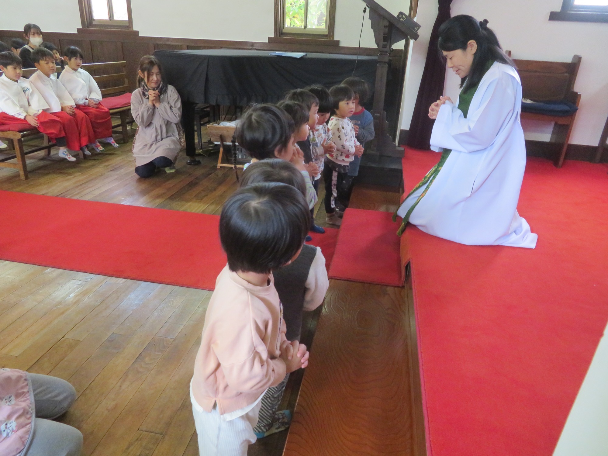 ひかりのこクラブ(未就園児)のお友だちと一緒に七五三の祝福を受けました。