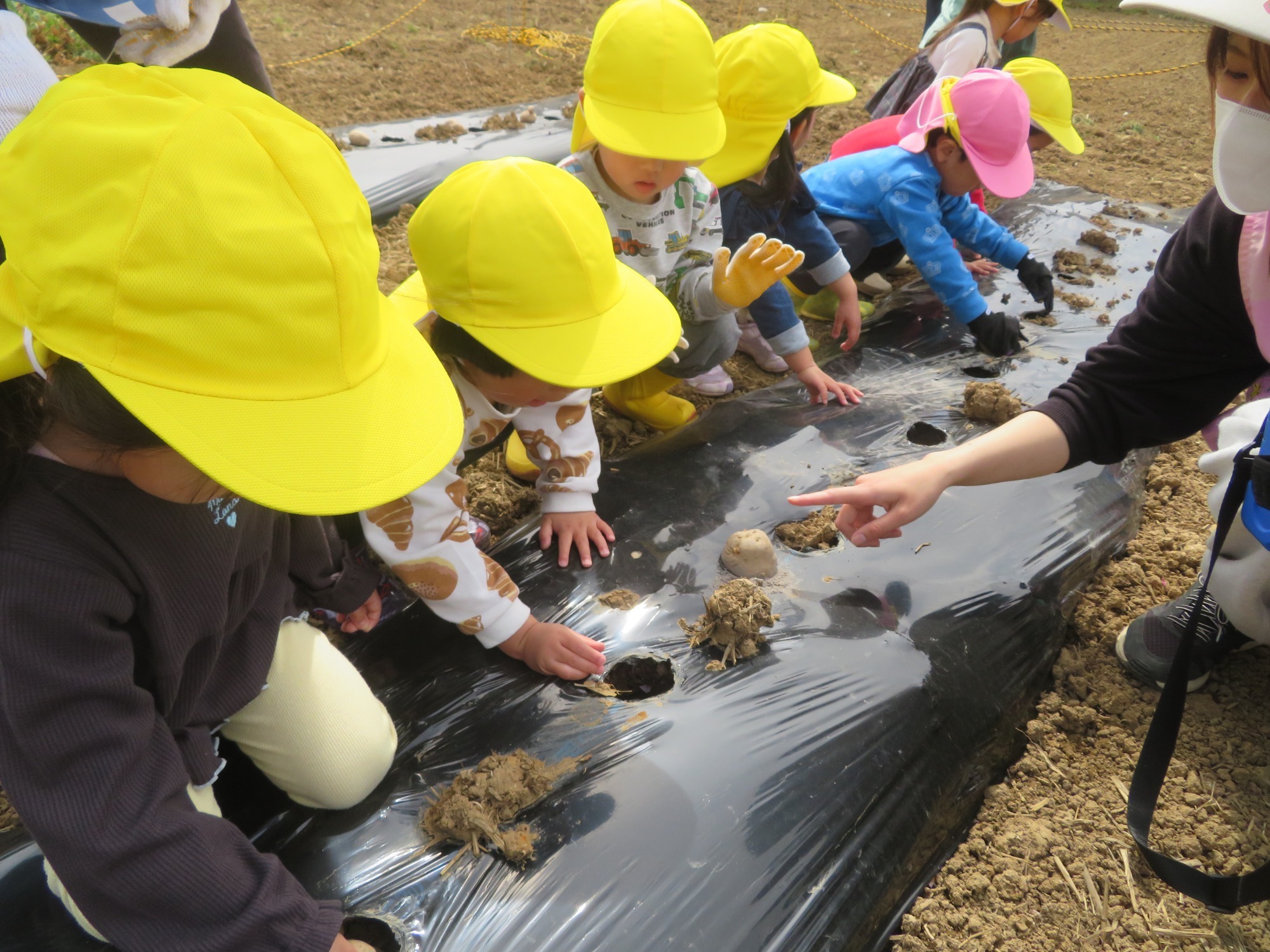 予定より1日早くじゃがいも植えを行いました。